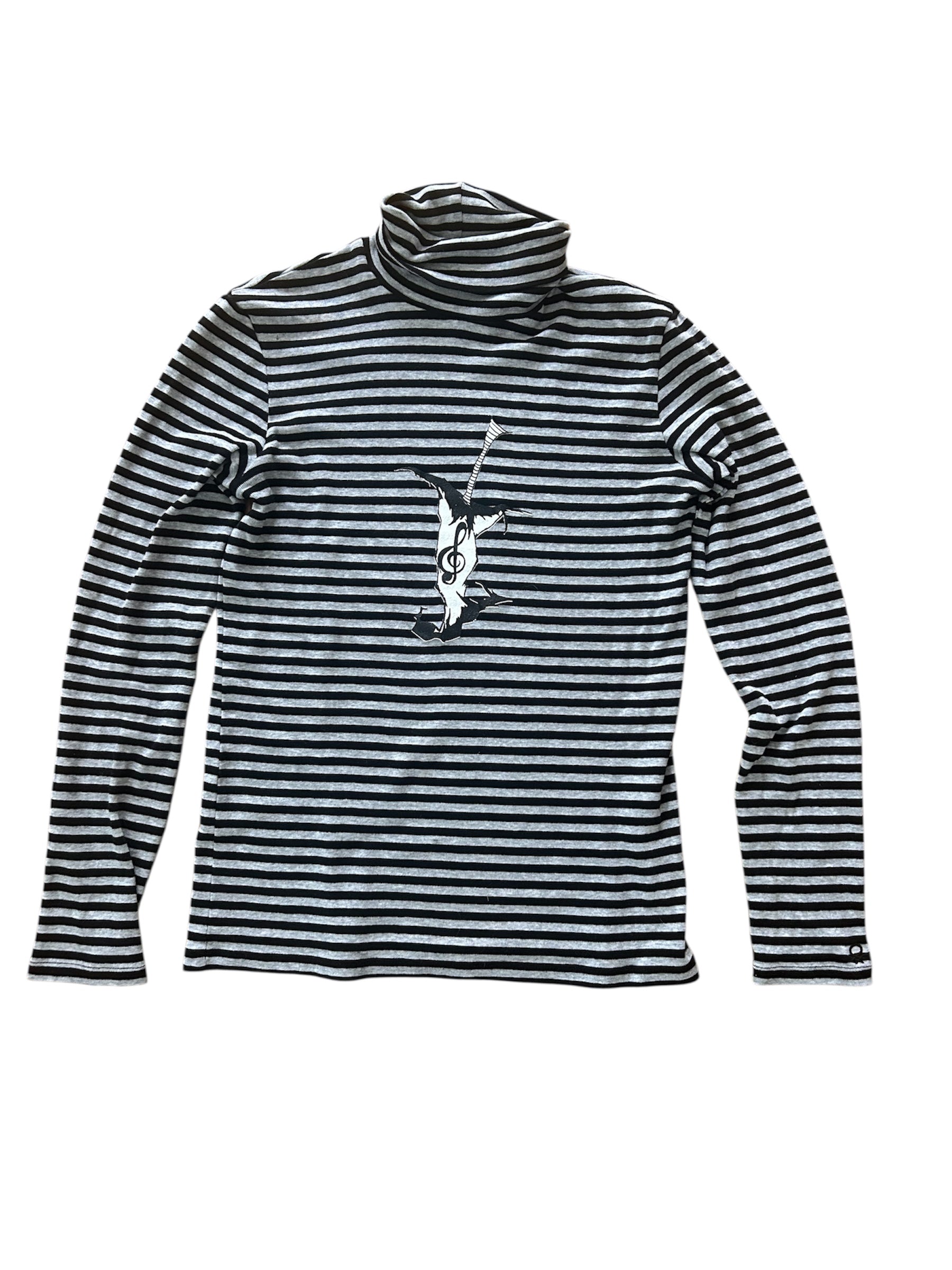 Vintage Y2K Benetton of cotton black & grey striped long sleeve with awesome original art design by fern screen-printed on